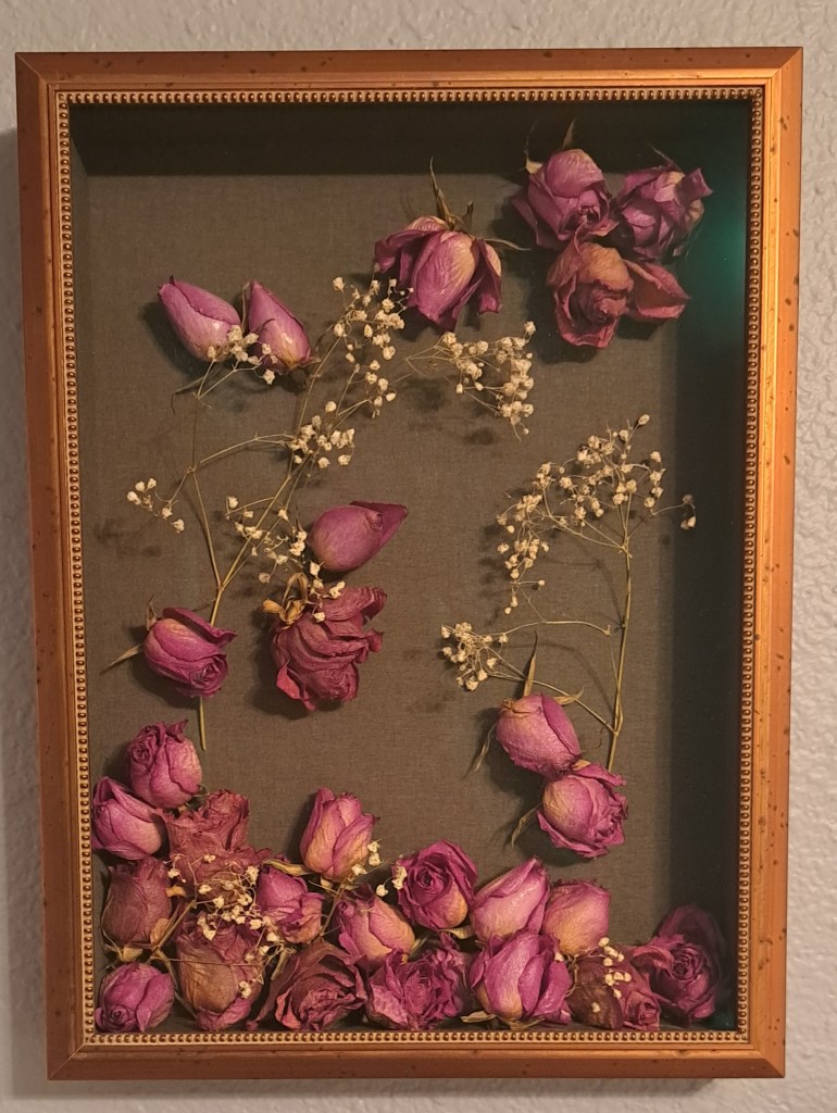 Wedding flowers shadow box.