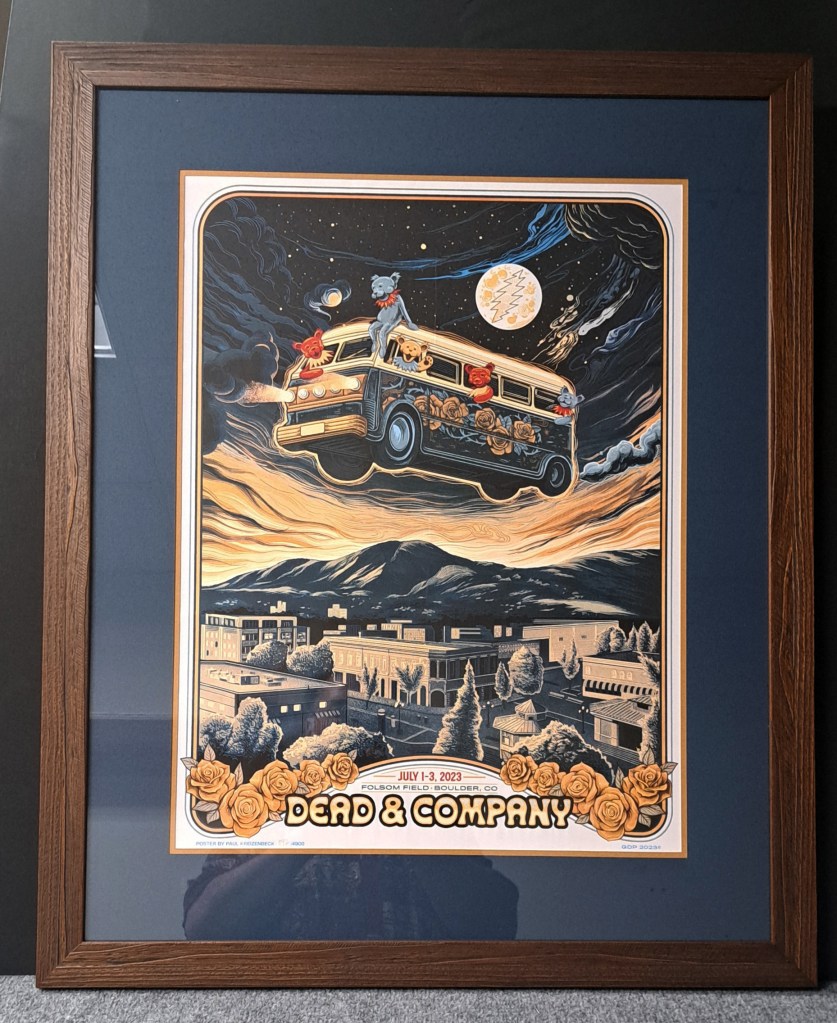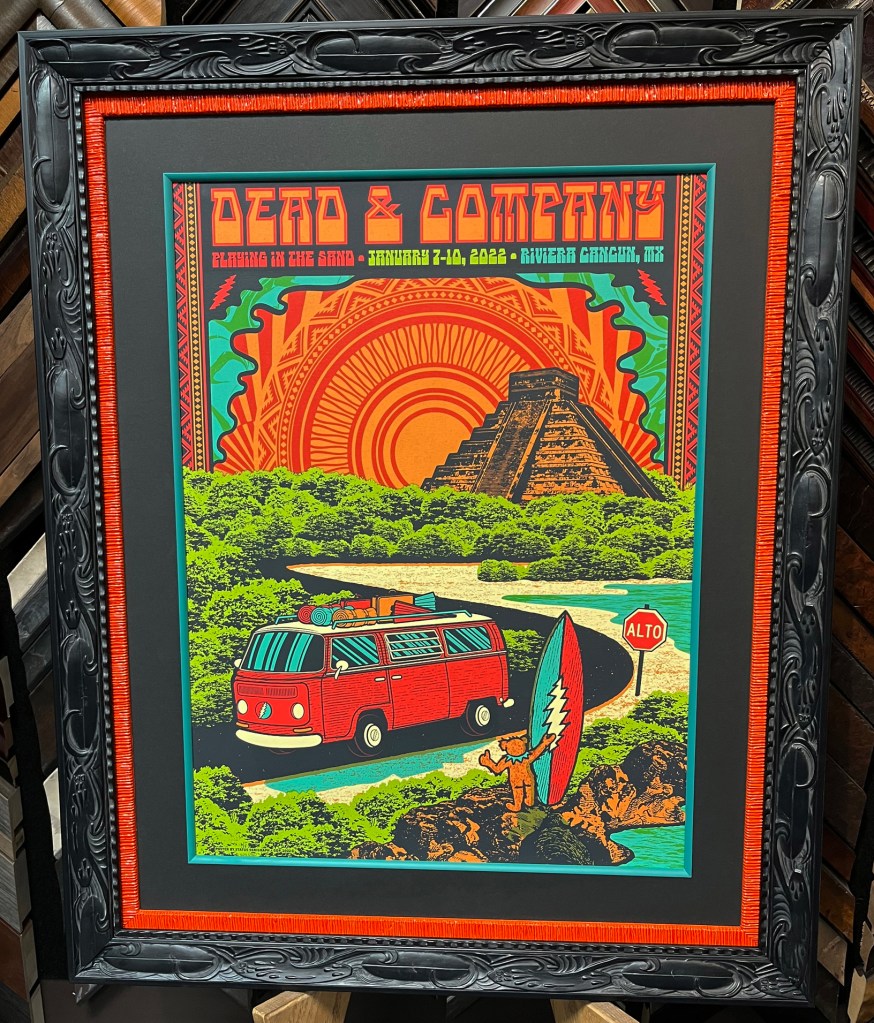 Concert poster with stacked double frame, mat and fillet.