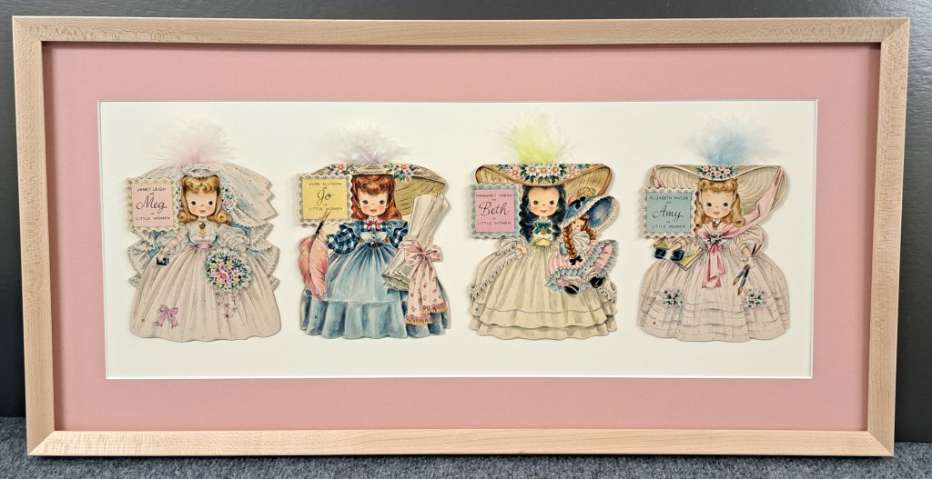 Vintage Little Women greeting cards with solid birch frame.