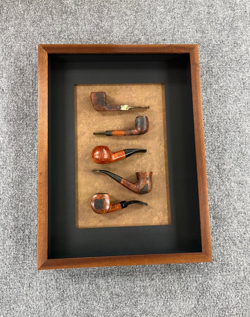 Smoking pipes shadow box.