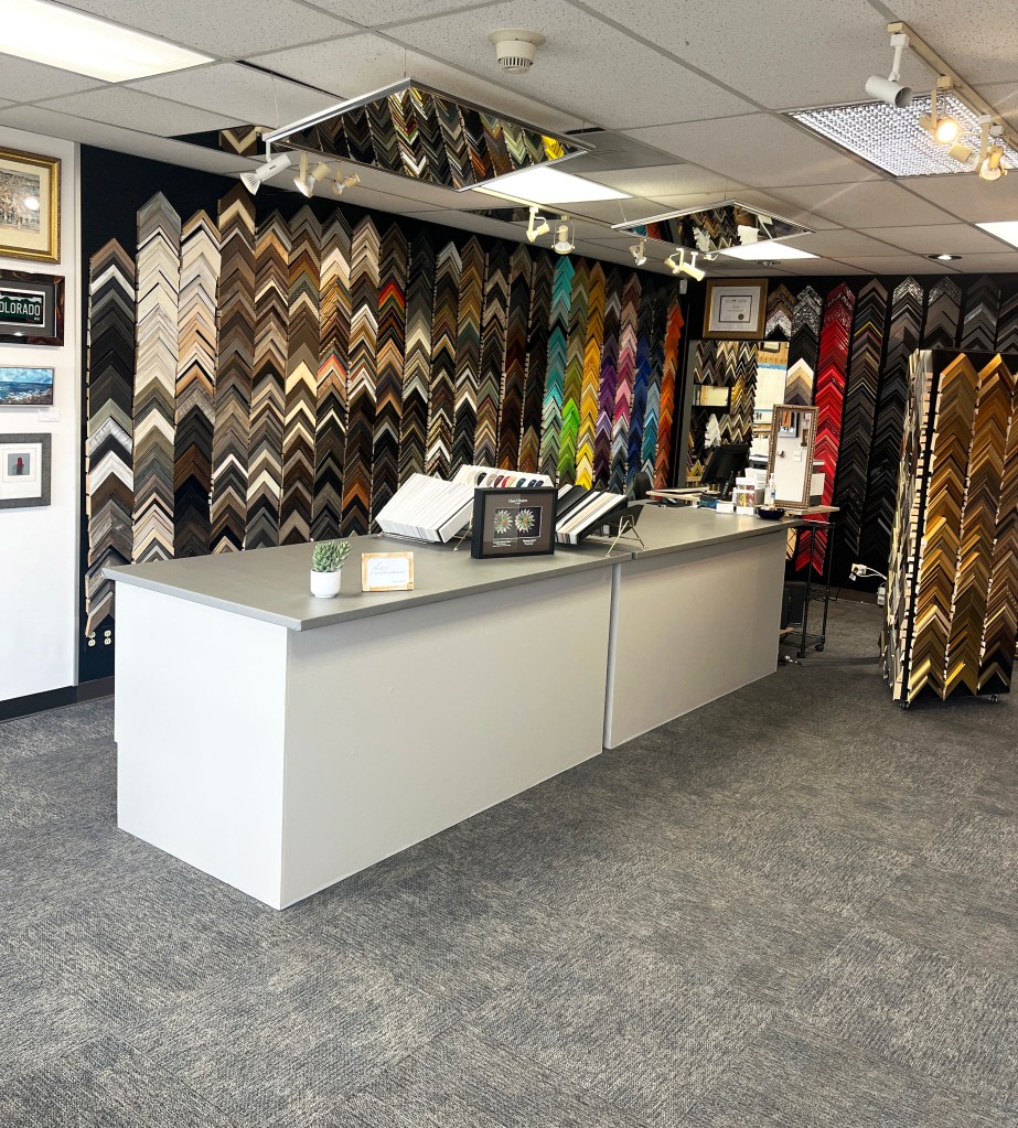 Our store is one of the best custom framing stores in the Denver Metro Area. We also feature a small gallery showcasing unique and varied art from local artists. Come see us and have a chat.